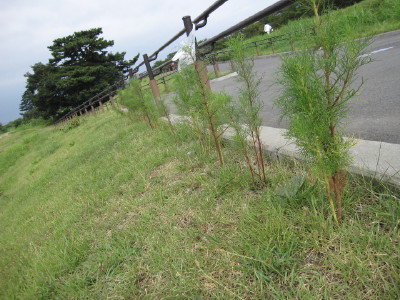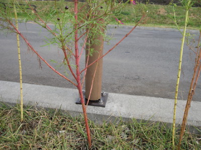 先日、木の枝を手すりに縛り、倒れていた一本の添え木にしたもの