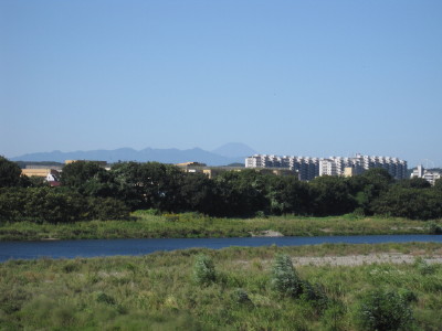 雪の無い富士山が見えます