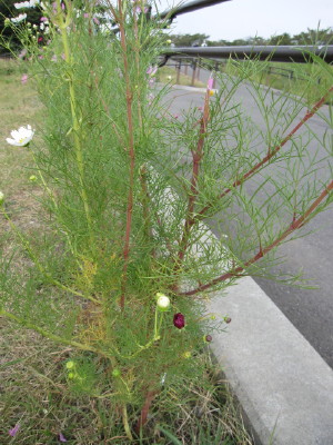 東側の赤いコスモス・・・上の芯がポッキリですが・・・