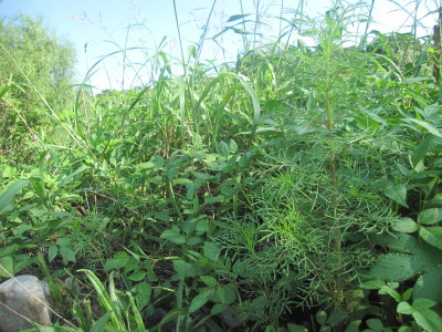 5/22に雑草の中に撒いた種は・・・? 雑草や、クズの葉に埋もれて花が咲くまでは確認できませ〜ん