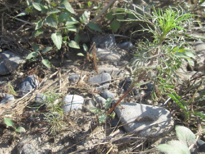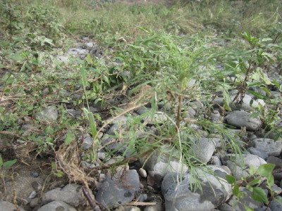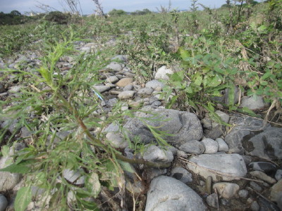 クズの葉の左下が、今回植えた河原です