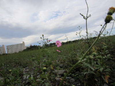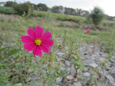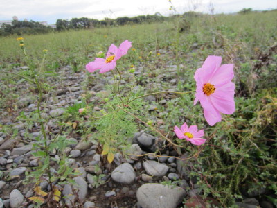 その友人達にエネルギーが届くように、多摩川に咲いた≪ド根性コスモス≫の写真を贈りました