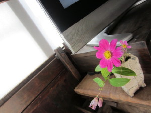 鉢を片付け、最後のコスモスとホトトギスを部屋に飾りました ・・・ コスモス達ありがとう!